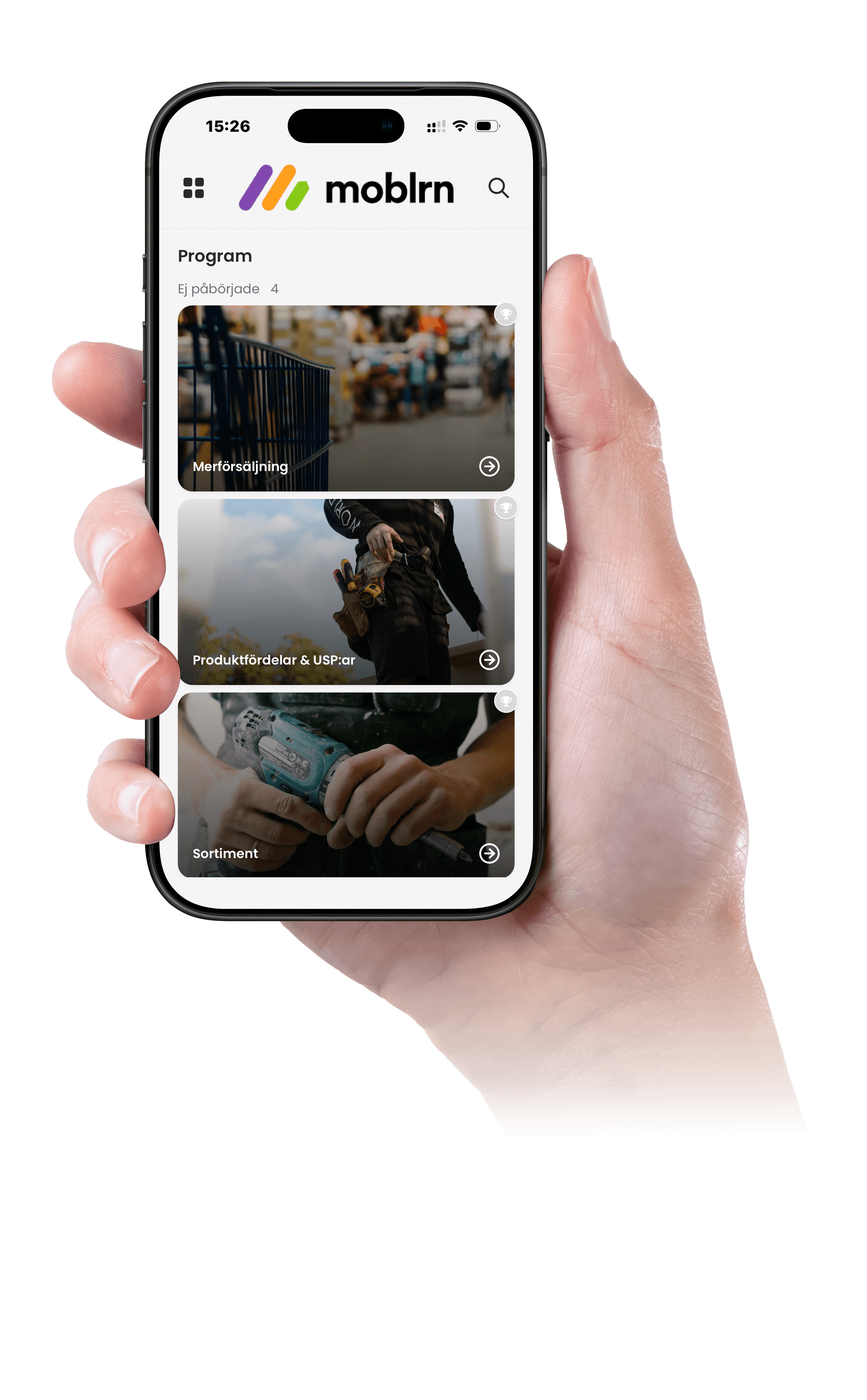 Med Moblrns app nås enkelt medarbetare och kunder var som helst, när som helst. Effektiv mobilutbildning säkerställer att viktig kunskap sprids snabbt – även till de individer som tidigare varit omöjliga att nå.